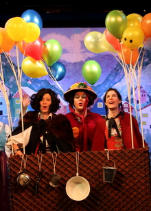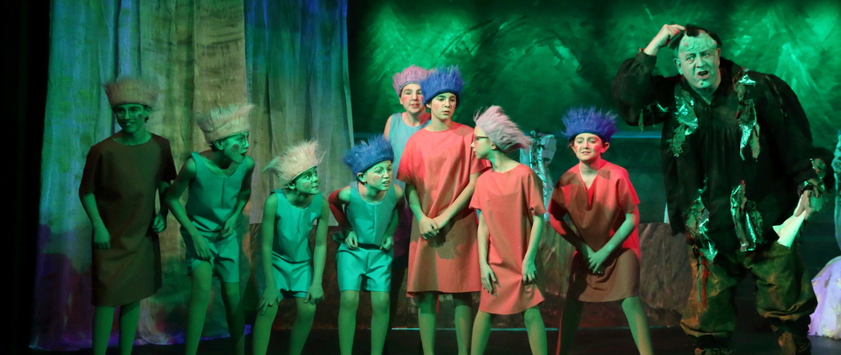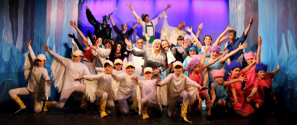 MOTHER GOOSE In November 2015, we performed the panto, Mother Goose, which included the traditional panto dame, her beloved goose, Heidi, and a rather unsavoury troll among other memorable characters. We would like to thank our enthusiastic audience, who really added to the impact of the show. We are delighted to announce that NODA (National Operatic and Dramatic Association) East District 4S has awarded us Best Technical Achievement for Set and Costumes during 2015 for our November panto, Mother Goose. Click here to see the NODA review of the production. Here are some photos from the show: BACK TO LIST OF PRODUCTIONS >>